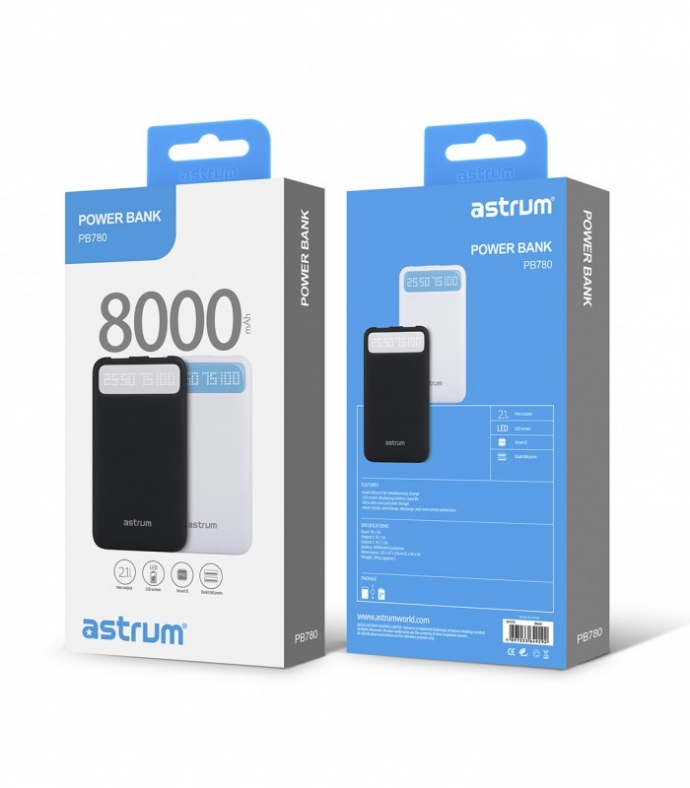 Power Bank 8000mAh, Polymer cell, Super slim design, Led indicator, 2 x usb port, 2.1A,